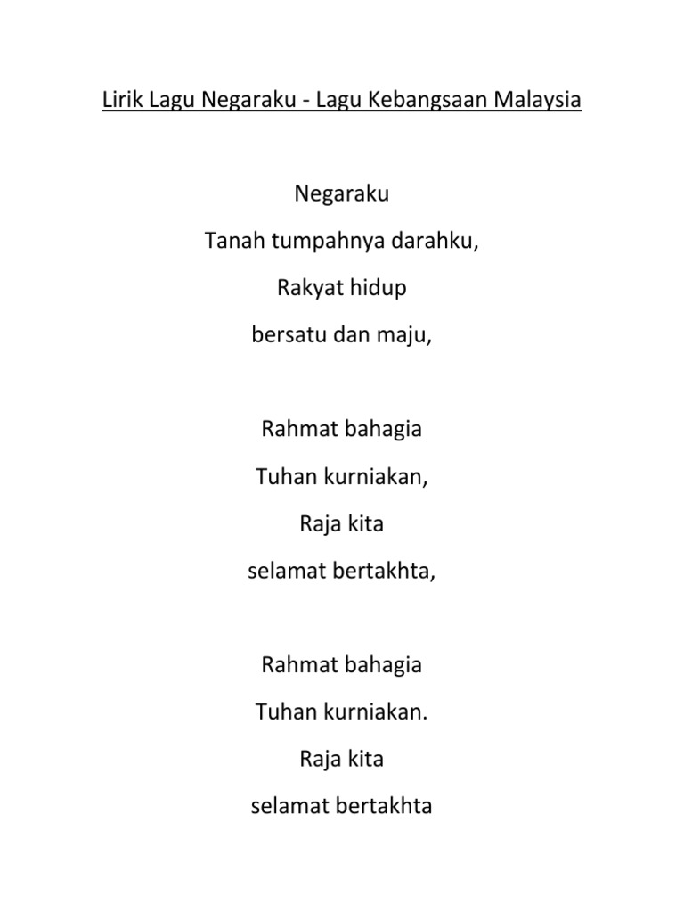 Lirik Lagu Negaraku Lagu Kebangsaan Malaysia Pdf