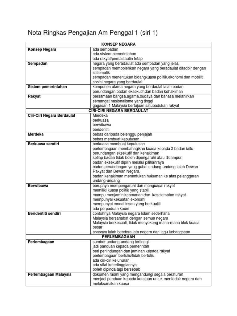 Nota Ringkas Pengajian Am Penggal 1 Pdf
