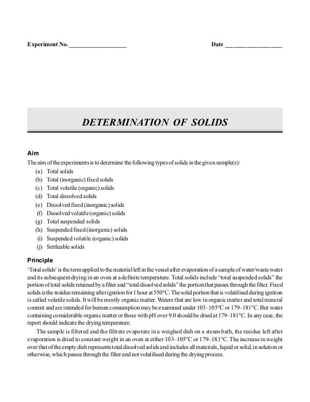 Experiment On Total Solid And Total Suspended Solid Pdf Filtration Solid